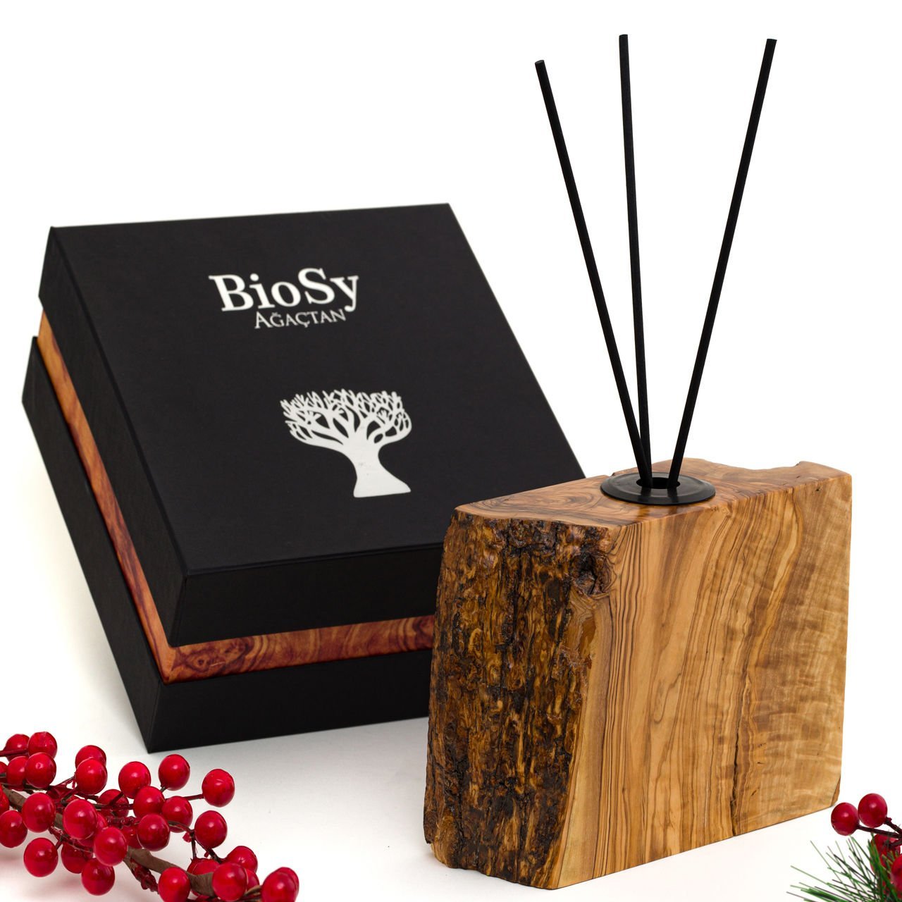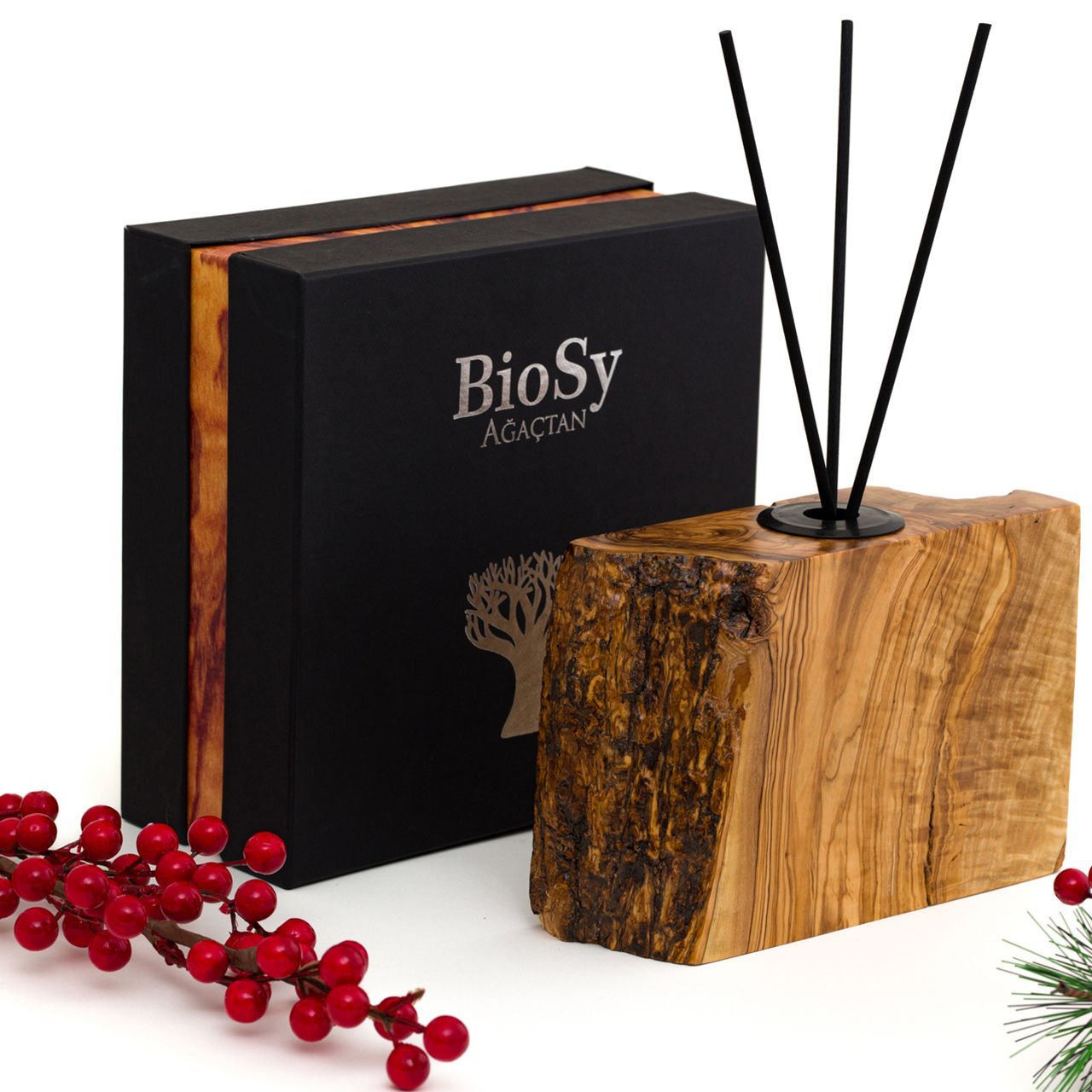 Ürün 14-17 cm Yükseklik ve 17-20 cm Çap büyüklüğündedir. Ürün malzemesinde doğal zeytin ağacı kullanılmıştır. Özel kutusu ve yanında kutu içerisinde 3 dal çubuk ile birlikte gönderilmektedir. Biosy ağaçtan oda kokusunun eşsiz şıklığı hem görsel hem koku olarak size mutluluk veriyor.Ağacın birleşiminden olan tasarımlar, birbirinden güzel biosy esanslar ile mekanınıza ferahlık ve tarz katıyor.