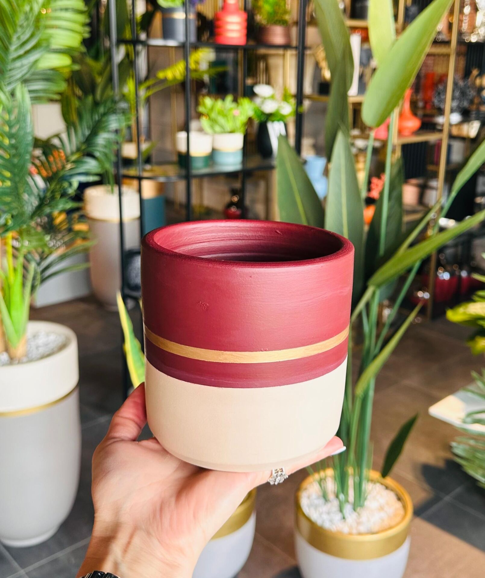 Seramik saksımız, iç mekanlarda kullanıma uygundur. Yerli üretimdir. El boyaması olup solma yaşanmaz ve işçilik detayları vardır. Oldukça şık ve dikkat çekici görüntüsü en büyük tercih sebeplerindendir. Fotoğrafta görülen çiçekler dekor amaçlıdır, belirtilen fiyatlar sadece saksılara aittir.
